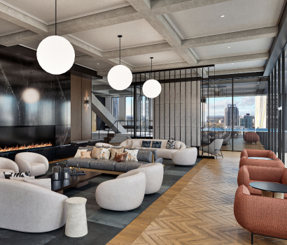 1 Palliser Square will feature high quality, luxury finishes, and a mix of units from studios, to 2 bedroom units. Additionally, the completed project will contain a full floor of amenities, including quiet working space, a golf simulator, a pool table, lounge, and outdoor skating rink.